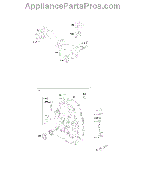 Parts for Briggs & Stratton 354447-0330-E1: Crankcase Cover, Intake Manifold Parts