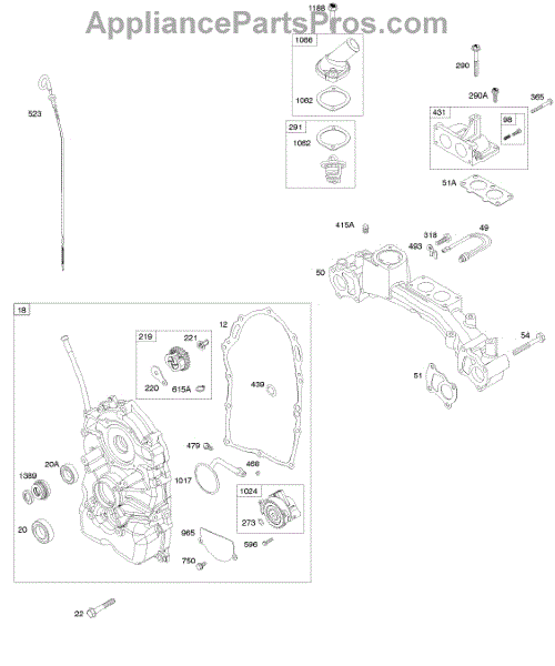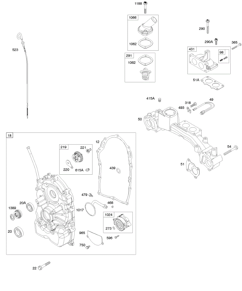 Parts for Briggs & Stratton 472177-0100-E1: Crankcase Cover, Intake Manifold, Water Inlet Parts
