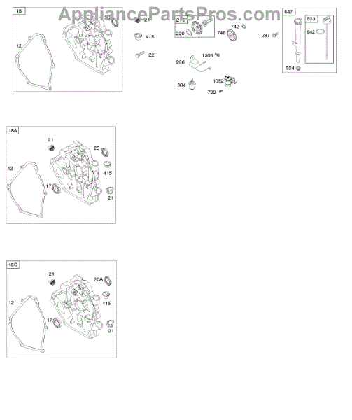 Parts for Briggs & Stratton 150212-2526-B8: Crankcase Cover, Lubrication Parts