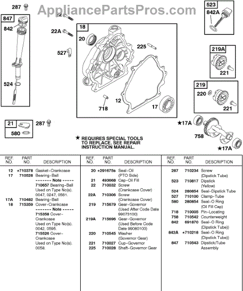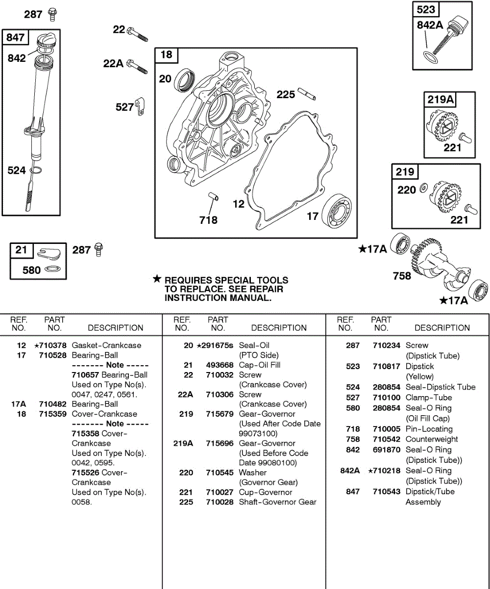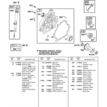 Parts for Briggs & Stratton 235432-0235-A1: Crankcase Cover, Lubrication Parts
