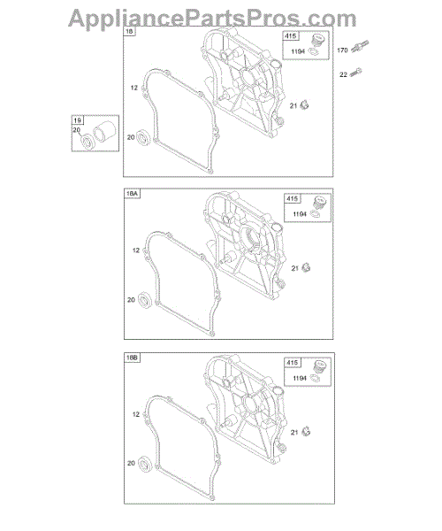 Parts for Briggs & Stratton 133432-0004-01: Crankcase Cover Parts
