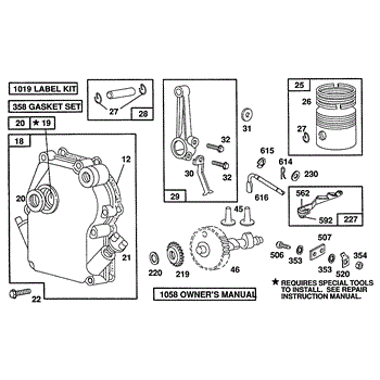 Parts for Briggs & Stratton 080212-2313-01: Crankcase Cover,Piston,Cam Parts