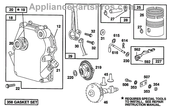 Parts for Briggs & Stratton 082252-0341-01: Crankcase Cover, Piston, Cam Parts