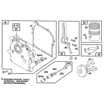 Parts for Briggs & Stratton 082331-0130-01: Crankcase Cover, Piston Grp. Parts