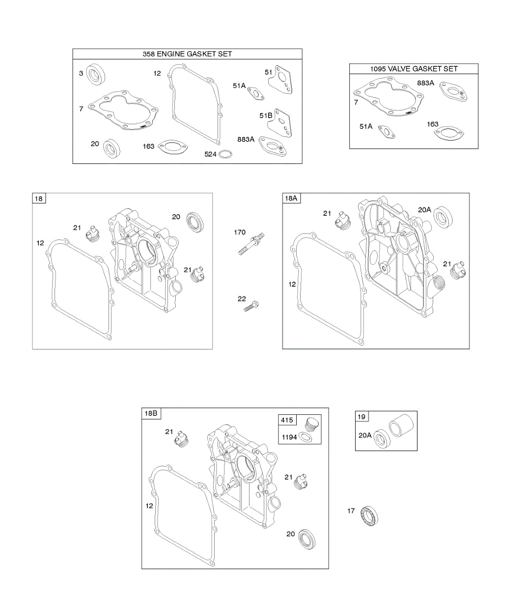 Parts for Briggs & Stratton 094302-0111-B1: Crankcase Cover / Sump, Gasket Set - Engine, Gasket Set - Valve Parts
