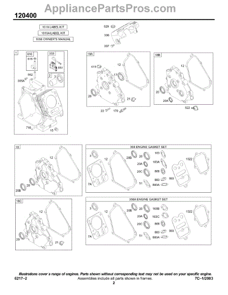 Parts for Briggs & Stratton 120412-0146-E1: Crankcase Cover / Sump, Cylinder / Kit / Gasket Parts