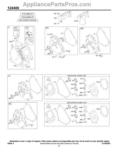 Parts for Briggs & Stratton 124432-0111-E1: Crankcase Cover / Sump, Cylinder Group, Kits / Gaskets - Engine Parts