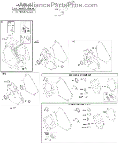 Parts for Briggs & Stratton 127432-0110-E1: Crankcase Cover / Sump, Cylinder, Kits / Gaskets - Engine Parts