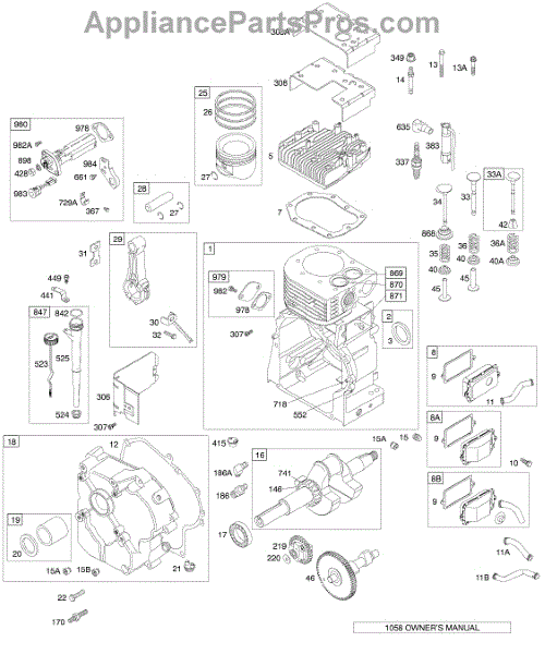 Parts for Briggs & Stratton 19G417-1181-E1: Crankcase / Cover Sump, Crankshaft, Piston, Oil Parts