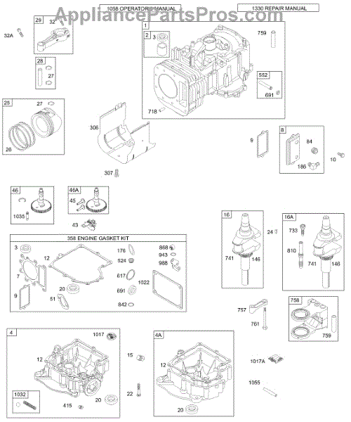 Parts for Briggs & Stratton 28S777-1148-E1: Crankcase Cover / Sump, Crankshaft, Cylinder, Piston / Rings, Connecting Rod Parts