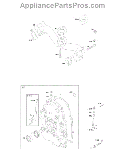 Parts for Briggs & Stratton 294447-0412-01: Crankcase Cover / Sump, Intake Manifold Parts