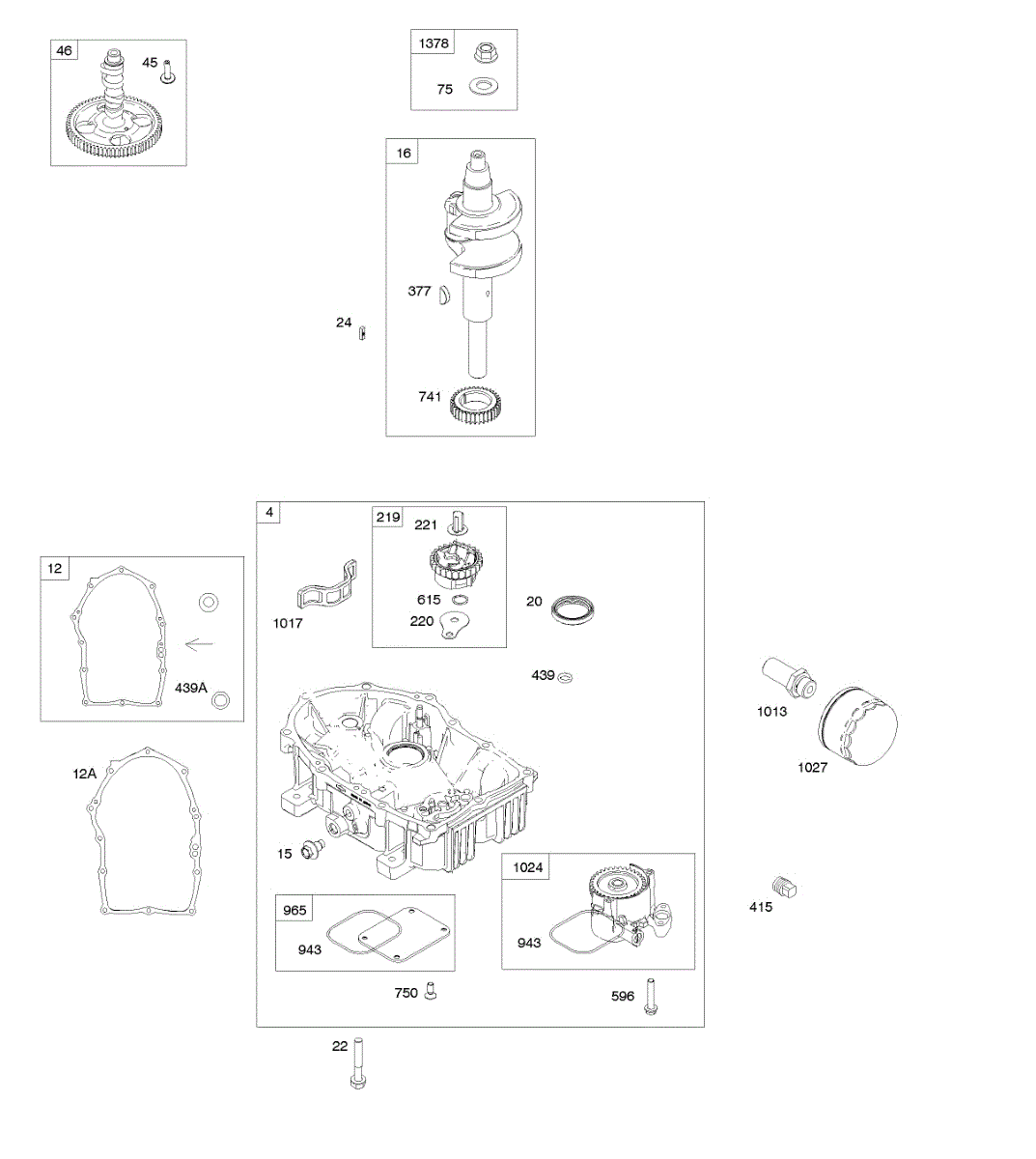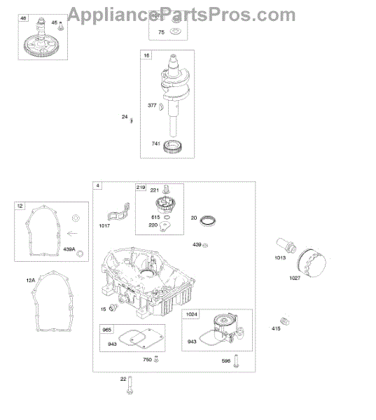 Parts for Briggs & Stratton 542777-2113-G1: Crankcase Cover / Sump, Crankshaft, Camshaft Parts