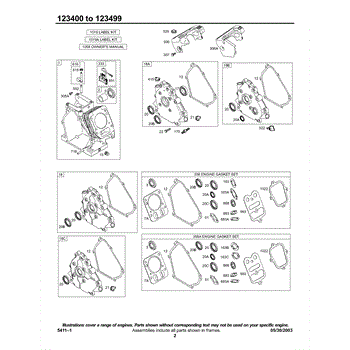 Parts for Briggs & Stratton 123437-0138-E1: Crankcase Cover / Sumps, Cylinder Group, Kits / Gasket-Engine Parts
