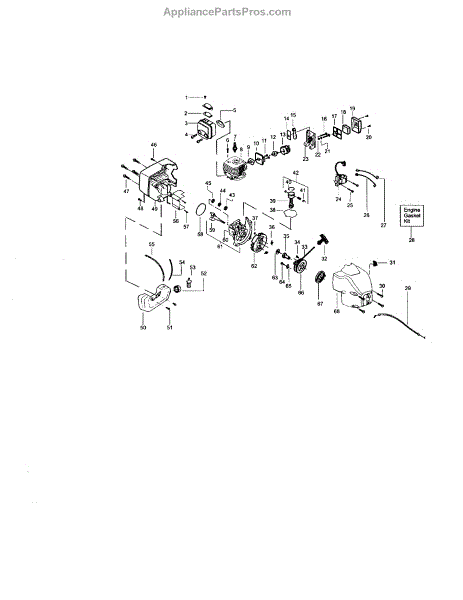 This gasket kit features replacement gaskets for use in a range of gas-powered handheld lawn and garden machines. The kit includes a range of O-rings, seals, and gaskets used as a means to provide tight seals between elements of the engine to prevent leaks from air, fuel, oil, and so forth. Even durable gaskets such as those found in engines will start to wear down over time. They can start to crack and break, and sometimes they will shrink. When this happens, they no longer provide a tight seal and will need to be replaced. It is recommended that the gaskets and seals are replaced whenever the owner is servicing their small engine. This will ensure a proper seal when the engine is reassembled. This gasket kit has genuine OEM parts to ensure a proper fit and a tight seal. The kit is sold individually and works with many models of string trimmer and edger. Compatible brands include Craftsman, Husqvarna, Weed Eater, and Poulan.