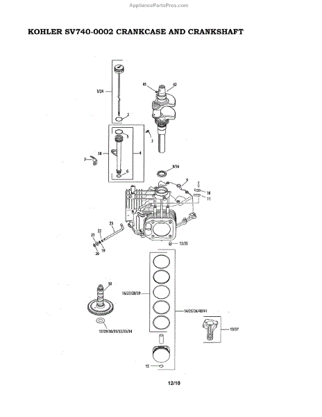 Parts for Kohler SV740-0002: Crankcase And Crankshaft Parts