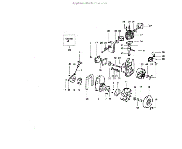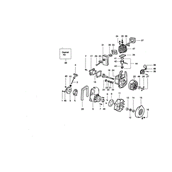 Fan housing assembly for gas leaf blowers. Encloses and protects the impeller fan. Replace if cracked, damaged, or missing to restore proper airflow.