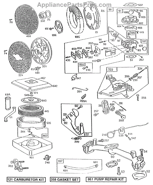 This fuel pump kit is made for use with lawn and garden equipment with small engines. The kit comes with all the diaphragms, gaskets, and additional parts needed to completely rebuild a fuel pump. It may be required if the lawn tool has fuel pump issues such as sluggish performance, leaks, and other problems. It can be used to fix the most common issues related to worn out diaphragms and gaskets.The fuel pump in lawn and garden equipment is a component that helps bring fuel from the tank to the engine when the carburetor is mounted at a lower position than the carburetor. With these kit parts, many issues with the fuel pump can be alleviated. Replacement requires a nut drive, a wrench set, and a socket set. The fuel pump will need to be disassembled to replace the parts that are not working correctly.This fuel pump kit is a genuine OEM replacement part sourced directly from the manufacturer. It's sold as an individual kit. The kit is designed to be used in lawnmowers and snowblowers manufactured by MasterCut, Briggs & Stratton, Craftsman, Simplicity, Toro, and Cub Cadet.