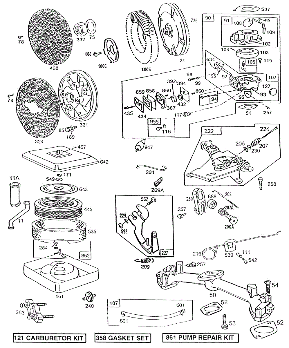 This fuel pump kit is made for use with lawn and garden equipment with small engines. The kit comes with all the diaphragms, gaskets, and additional parts needed to completely rebuild a fuel pump. It may be required if the lawn tool has fuel pump issues such as sluggish performance, leaks, and other problems. It can be used to fix the most common issues related to worn out diaphragms and gaskets.The fuel pump in lawn and garden equipment is a component that helps bring fuel from the tank to the engine when the carburetor is mounted at a lower position than the carburetor. With these kit parts, many issues with the fuel pump can be alleviated. Replacement requires a nut drive, a wrench set, and a socket set. The fuel pump will need to be disassembled to replace the parts that are not working correctly.This fuel pump kit is a genuine OEM replacement part sourced directly from the manufacturer. It's sold as an individual kit. The kit is designed to be used in lawnmowers and snowblowers manufactured by MasterCut, Briggs & Stratton, Craftsman, Simplicity, Toro, and Cub Cadet.