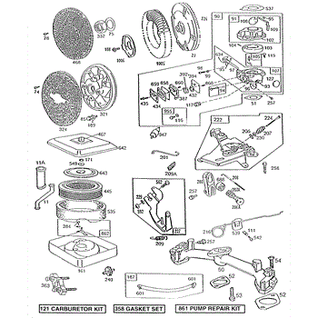 This fuel pump kit is made for use with lawn and garden equipment with small engines. The kit comes with all the diaphragms, gaskets, and additional parts needed to completely rebuild a fuel pump. It may be required if the lawn tool has fuel pump issues such as sluggish performance, leaks, and other problems. It can be used to fix the most common issues related to worn out diaphragms and gaskets.The fuel pump in lawn and garden equipment is a component that helps bring fuel from the tank to the engine when the carburetor is mounted at a lower position than the carburetor. With these kit parts, many issues with the fuel pump can be alleviated. Replacement requires a nut drive, a wrench set, and a socket set. The fuel pump will need to be disassembled to replace the parts that are not working correctly.This fuel pump kit is a genuine OEM replacement part sourced directly from the manufacturer. It's sold as an individual kit. The kit is designed to be used in lawnmowers and snowblowers manufactured by MasterCut, Briggs & Stratton, Craftsman, Simplicity, Toro, and Cub Cadet.