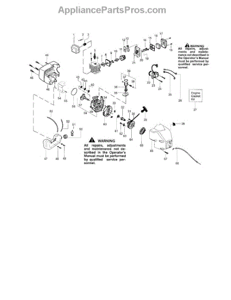 This gasket kit features replacement gaskets for use in a range of gas-powered handheld lawn and garden machines. The kit includes a range of O-rings, seals, and gaskets used as a means to provide tight seals between elements of the engine to prevent leaks from air, fuel, oil, and so forth. Even durable gaskets such as those found in engines will start to wear down over time. They can start to crack and break, and sometimes they will shrink. When this happens, they no longer provide a tight seal and will need to be replaced. It is recommended that the gaskets and seals are replaced whenever the owner is servicing their small engine. This will ensure a proper seal when the engine is reassembled. This gasket kit has genuine OEM parts to ensure a proper fit and a tight seal. The kit is sold individually and works with many models of string trimmer and edger. Compatible brands include Craftsman, Husqvarna, Weed Eater, and Poulan.