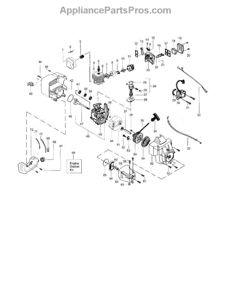 This gasket kit features replacement gaskets for use in a range of gas-powered handheld lawn and garden machines. The kit includes a range of O-rings, seals, and gaskets used as a means to provide tight seals between elements of the engine to prevent leaks from air, fuel, oil, and so forth. Even durable gaskets such as those found in engines will start to wear down over time. They can start to crack and break, and sometimes they will shrink. When this happens, they no longer provide a tight seal and will need to be replaced. It is recommended that the gaskets and seals are replaced whenever the owner is servicing their small engine. This will ensure a proper seal when the engine is reassembled. This gasket kit has genuine OEM parts to ensure a proper fit and a tight seal. The kit is sold individually and works with many models of string trimmer and edger. Compatible brands include Craftsman, Husqvarna, Weed Eater, and Poulan.