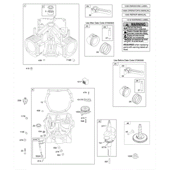 Parts for Briggs & Stratton 385777-0117-E1: Crankshaft, Cylinder, Sump, Piston / Rings / Conn Rod Parts