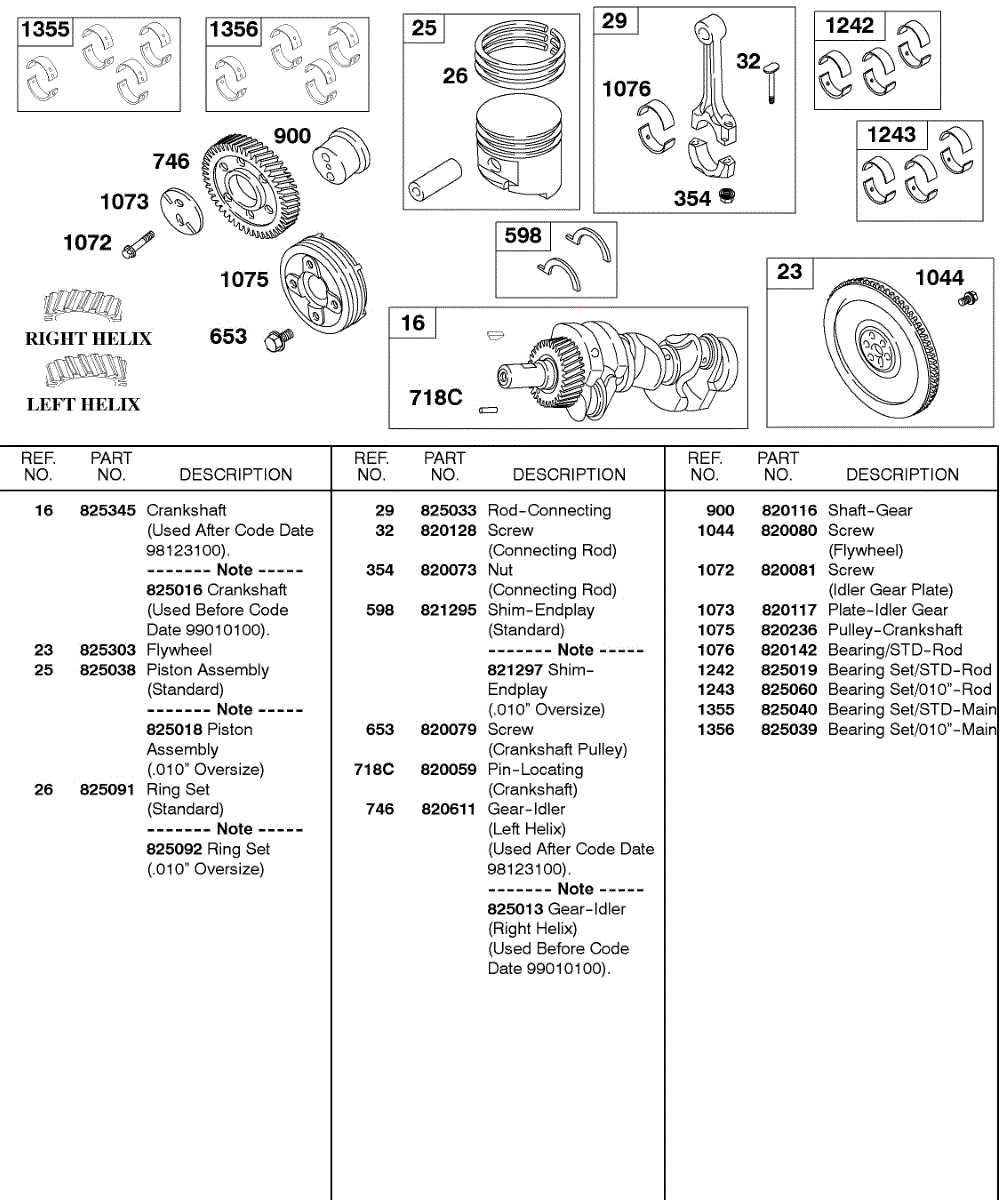 Parts for Briggs & Stratton 430447-0105-A1: Crankshaft, Flywheel, Piston / Rings / Connecting Rods Parts