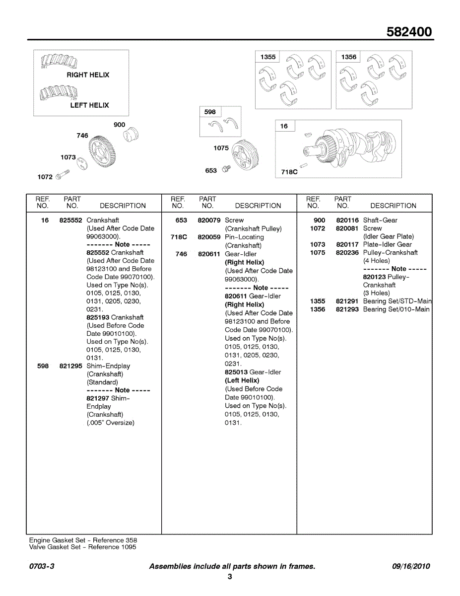 Parts for Briggs & Stratton 582447-0405-E2: Crankshaft, Idler Gear Parts