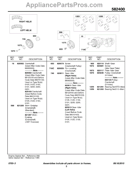 Parts for Briggs & Stratton 582447-0478-E2: Crankshaft, Idler Gear Parts