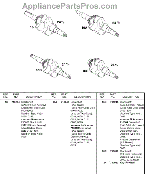 Parts for Briggs & Stratton 085432-0036-01: Crankshaft Parts