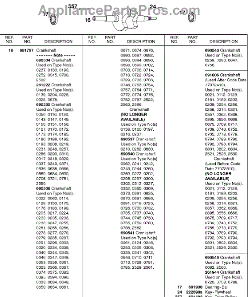 Parts for Briggs & Stratton 326431-0201-99: Crankshaft Parts