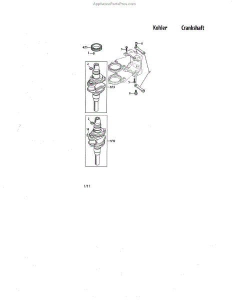 Parts for Kohler 752KSV5900220: Crankshaft Parts