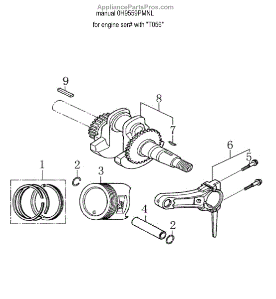 Parts for Generac 006022-0: Crankshaft & Piston Parts