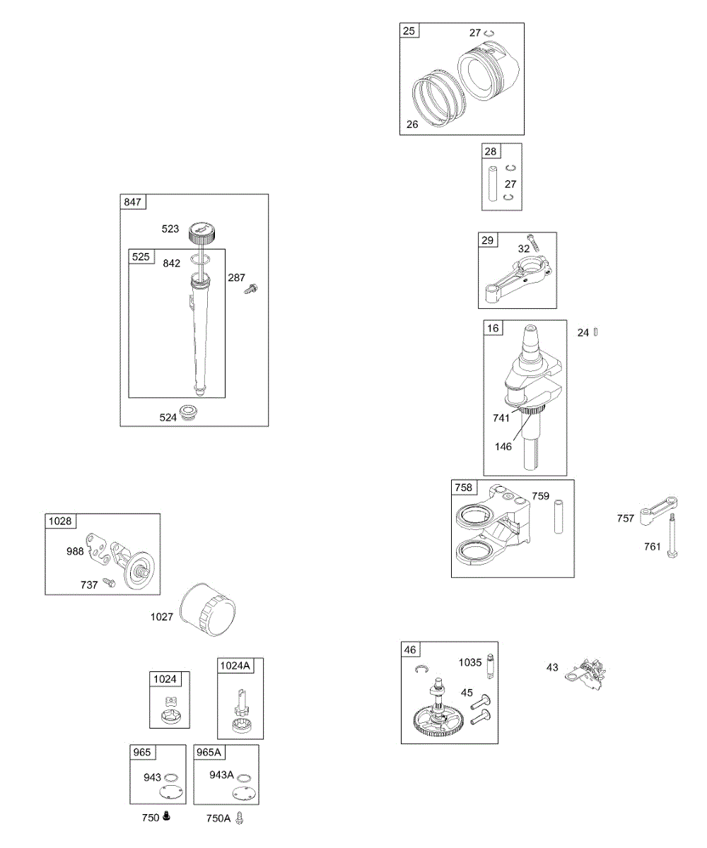 Parts for Briggs & Stratton 311707-0125-E1: Crankshaft, Piston, Camshaft, Oil Parts