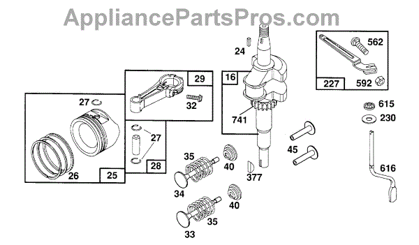 Parts for Briggs & Stratton 121802-0262-01: Crankshaft, Piston Group Parts