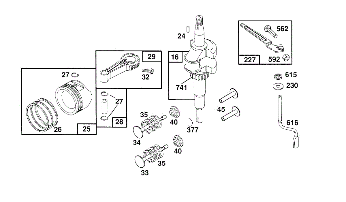Parts for Briggs & Stratton 124802-3230-01: Crankshaft, Piston Group Parts