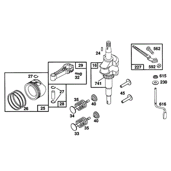 Parts for Briggs & Stratton 125702-0115-02: Crankshaft, Piston Group Parts