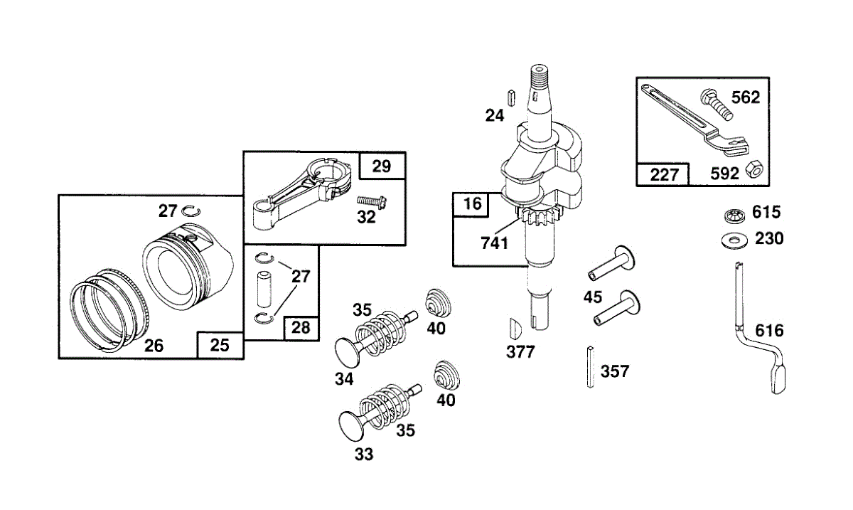 Parts for Briggs & Stratton 126702-0121-01: Crankshaft, Piston Group Parts