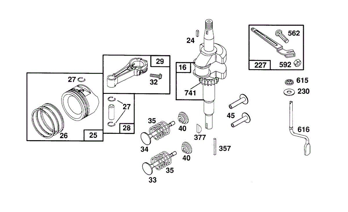 Parts for Briggs & Stratton 126802-3217-02: Crankshaft, Piston Group Parts