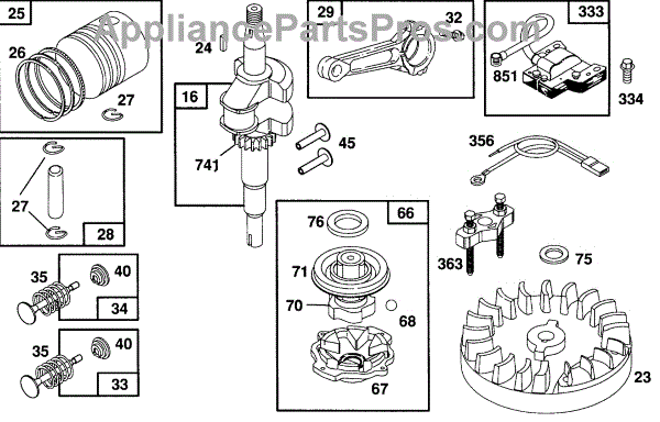 Parts for Briggs & Stratton 093902-0612-01: Crankshaft,Piston Grp,Elect. Parts
