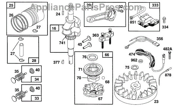 Parts for Briggs & Stratton 093902-3135-01: Crankshaft,Piston Grp,Elect. Parts