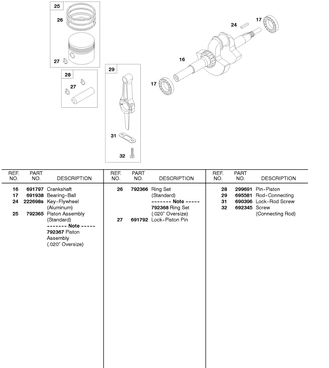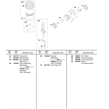 Parts for Briggs & Stratton 327431-0100-01: Crankshaft, Piston / Rings / Connecting Rod Parts