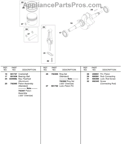 Parts for Briggs & Stratton 327431-3131-08: Crankshaft, Piston / Rings / Connecting Rod Parts