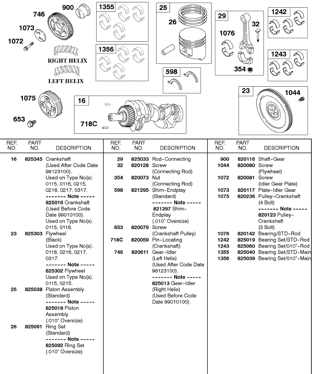 Parts for Briggs & Stratton 433447-0115-A1: Crankshaft, Piston, Rings, Flywheel Parts