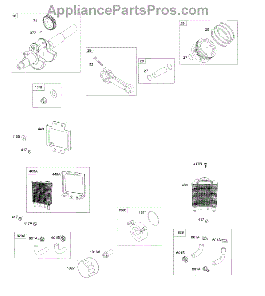 Parts for Briggs & Stratton 543275-0116-E1: Crankshaft, Piston / Rings / Connecting Rod, Oil Coolers Parts