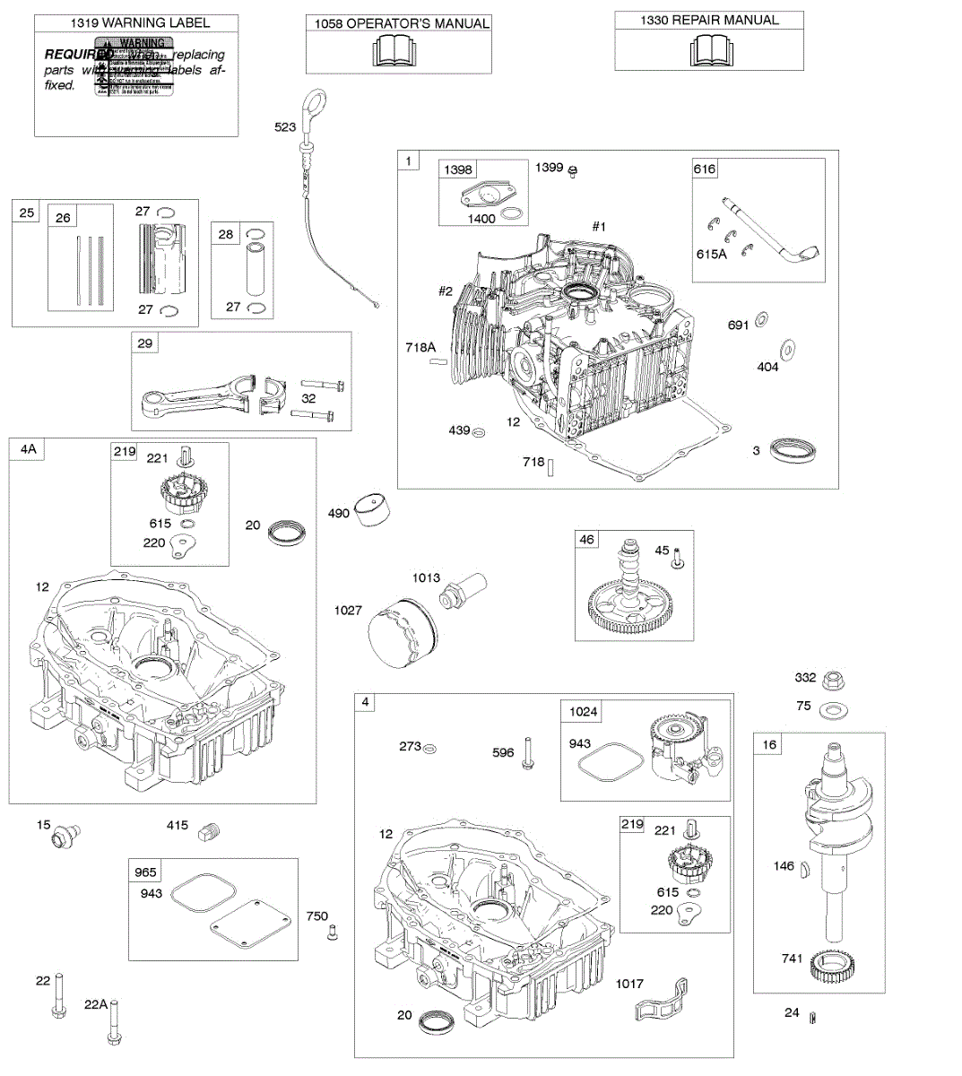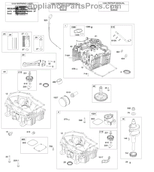 Parts for Briggs & Stratton 543577-0110-B1: Crankshaft, Piston / Rings / Connecting Rod, Cylinder, Crankcase Cover / Sump, Camshaft Parts