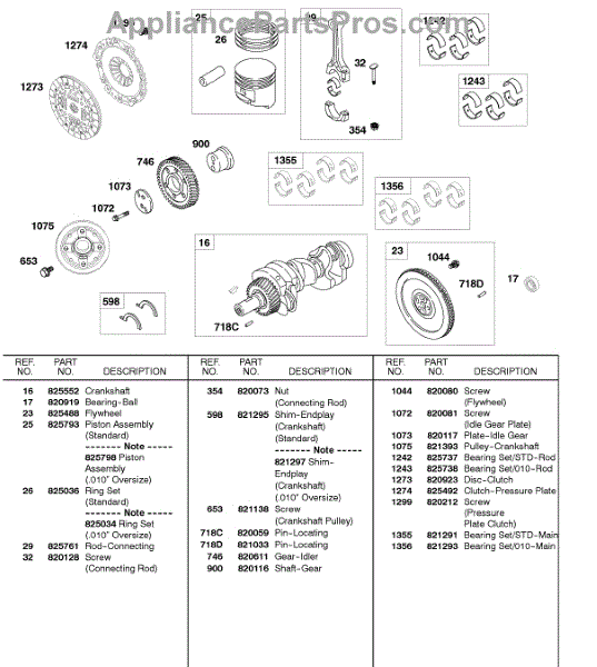 Parts for Briggs & Stratton 58E447-0411-E2: Crankshaft, Piston / Rings, Flywheel, Clutch Parts