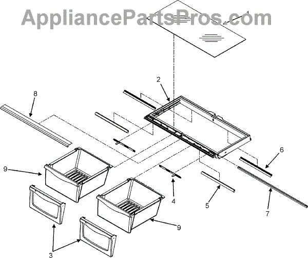 This crisper shelf frame forms the cover above your refrigerator's produce drawers, supporting the shelf glass and helping guide the drawers below. Replacing a cracked or warped frame restores a flat, sturdy surface and smooth drawer operation.