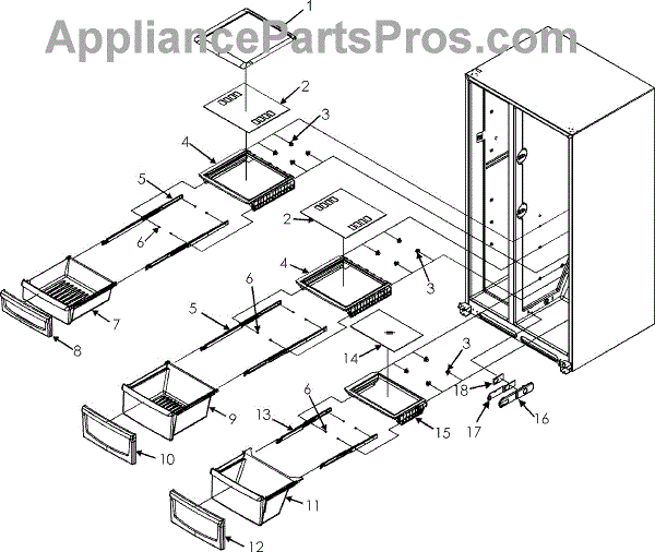 This crisper drawer cover frame forms the shelf above the produce bins and supports the glass insert. Replacing a damaged frame restores a level surface and smooth crisper drawer operation in your refrigerator.