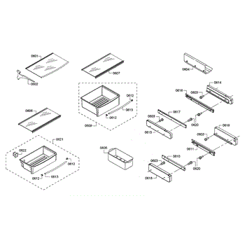 Drawer slide rail for side-by-side refrigerators. Mounts inside cabinet to support and guide drawer movement. Replace if cracked, bent, or broken.